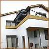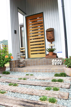 − 外観は銀色のガルバリウムに薄い色の木をあわせています。